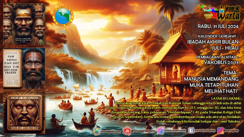 RABU, 31 JULI 2024 | KALENDER GEREJAWI : IBADAH AKHIR BULAN JULI - HIJAU | PEMBACAAN ALKITAB : YAKOBUS 2:1-13